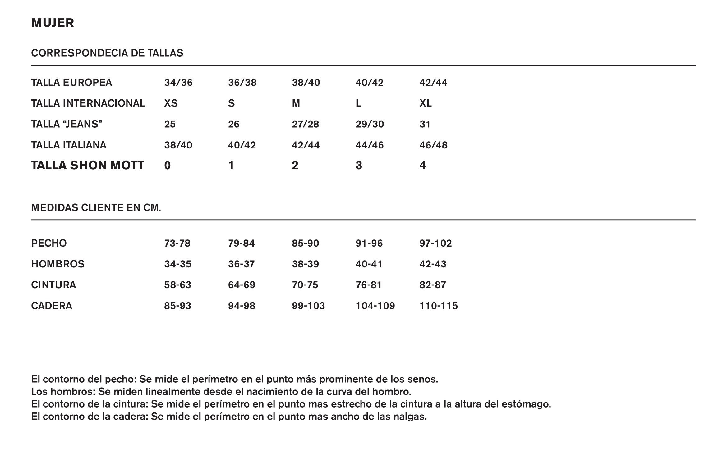 Shon Mott no aceptará cambios o devoluciones de prendas de baño y/o ropa interior por razones de higiene.